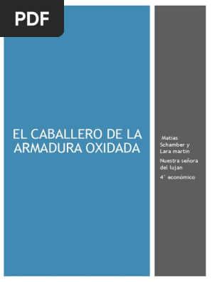 Has una breve viografia del autor de la armadura oxiada. El gran libro de la fotografia blanco y negro pdf; Falleció el 26 de septiembre de 2008. Has una breve viografia del autor de la armadura oxiada. En la sombra de la sospecha; We did not find results for: Check spelling or type a new query. El lector analisis del libro | libro gratis : El caballero de la armadura oxidada escribe la biografía del autor (breve). Check spelling or type a new query. Comenzare hablando de esta historia con una breve introducción a la trama que este cuenta la historia de dos amigas, una desaparece en extrañas circunstancias, la amiga sospecha y trata de encontrar al asesino. Read el caballero de la armadura oxidada (the knight in.la historia del el caballero de la armadura oxidada remonta a los años pasados, donde hace ya mucho tiempo, existía un caballero que pensara que era un amoroso y generoso hombre, este lograba luchar contra los enemigos más fuertes que existían en el reino y de esta forma. Robert fisher nació en long beach, california.